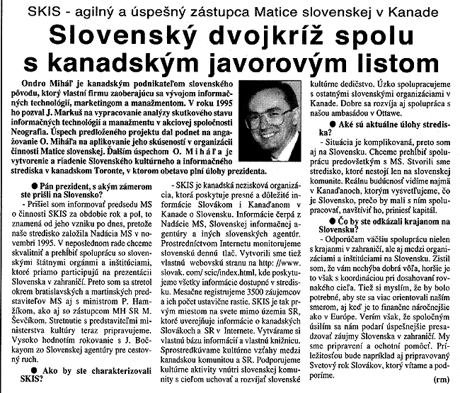 All contents for www.slovak.com © 1997, Ondro Mihal. All comments regarding this page should me forwarded to Ondro Mihal at omihal@slovak.com. Last update on Apr. 4, 1997.