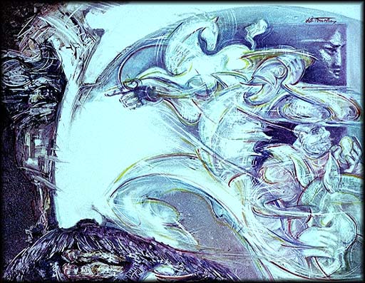 Title:Cervantes Date: 1984 Size:24" x 30" Description: The wrter and his vision.