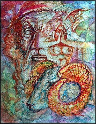 Description: The misterious worlds of inner travels. Water colours lends itself to express those mystical zones.