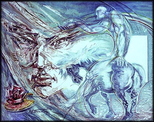 Title: Don Quichotte Date: 1984 Size:24" x 30" Description: Fascinating character in search of the unknown.